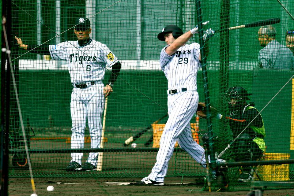 阪神の新外国人キャンベルがキャンプで初めてシートノックや内野ノックに参加、無難な動きを見せた。