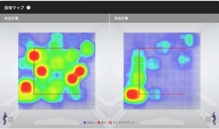 右打者の真っ赤なところ全部ボール球やで。