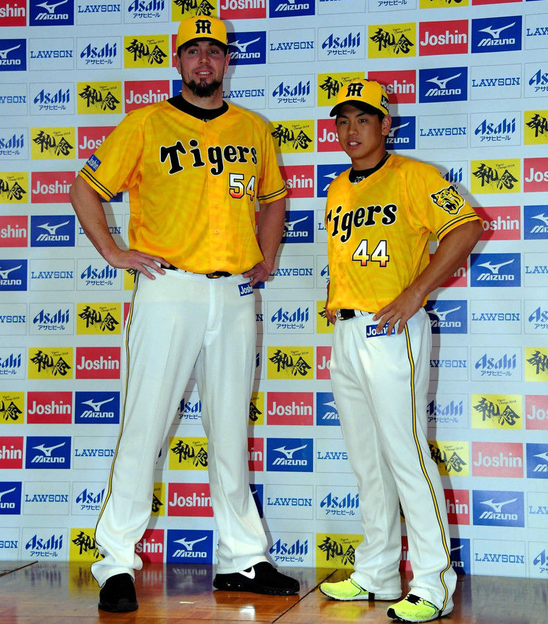 同じく発表会に登場したメッセンジャーは「イエローが基調となっていて、表にタイガース(のロゴ)が入ってあるのはかっこいいと思います。このユニホームを着て試合をするのがすごく楽しみです」とうなずいた。