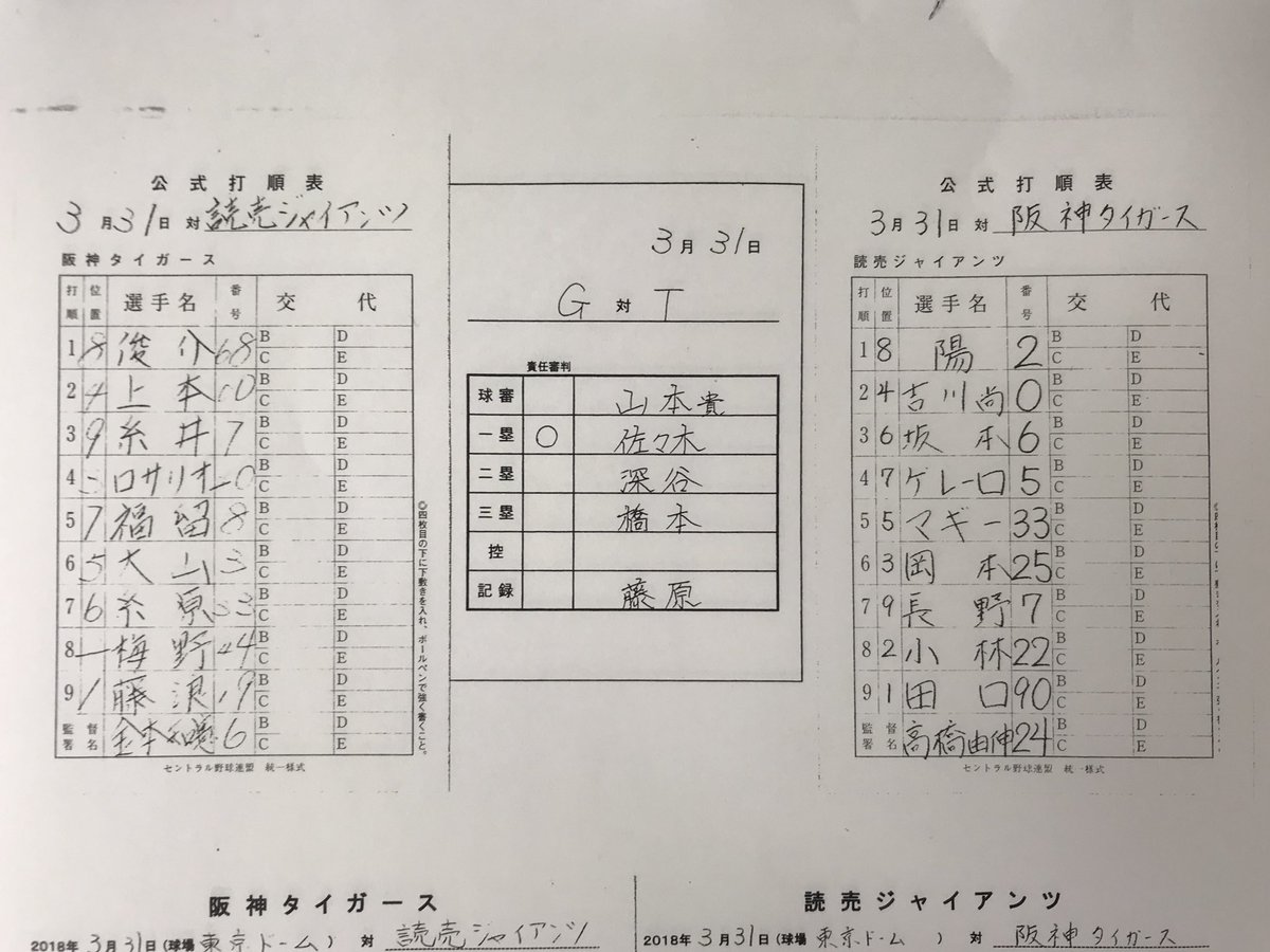 【開幕戦試合結果】巨人1-5阪神 2018/3/30 東京ドーム