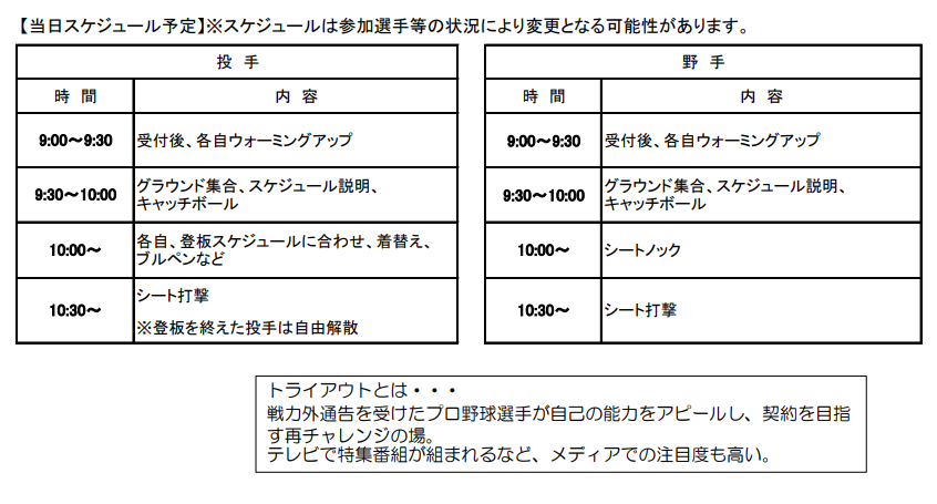 今日はトライアウトか。努力してる選手は報われて欲しいな。