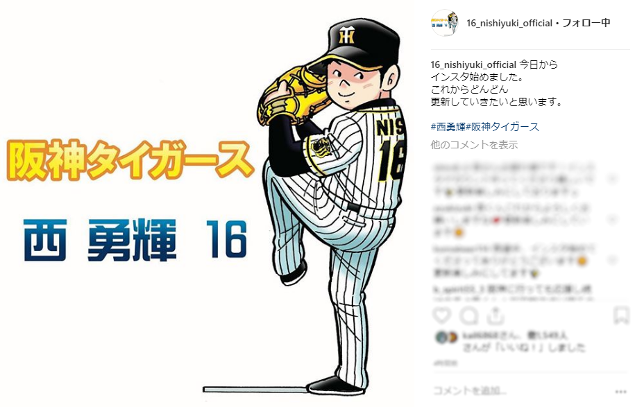 西のインスタ阪神選手のフォローは梅野のみか今の所