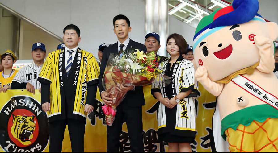 阪神矢野燿大監督(50)ら首脳陣が31日、春季キャンプ地の沖縄に入った。那覇空港では歓迎セレモニーが行われ、矢野監督が花束を受け取った。多くのファンも集まり、サインを求められるなど熱烈な歓迎を受けた。