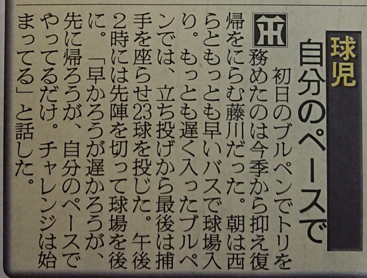 「早かろうが遅かろうが、自分のペースでやってるだけ。チャレンジは始まってる」by藤川球児