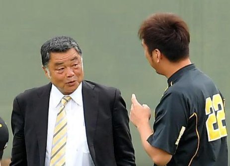 陣中見舞い金を、選手会長の梅野隆太郎捕手(27)に贈呈する際には「(優勝していい酒を)飲まんかい!」と川藤節で湧かせていた。
