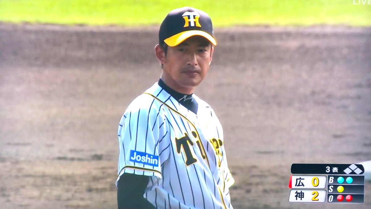 阪神・2番手の能見が、わずか8球であっさりと三者凡退に仕留めた。先頭の9番堂林を捕ゴロ、1番田中広を二ゴロ、続く菊池涼を遊ゴロに抑える完璧な内容で、今年の初実戦を終えた。