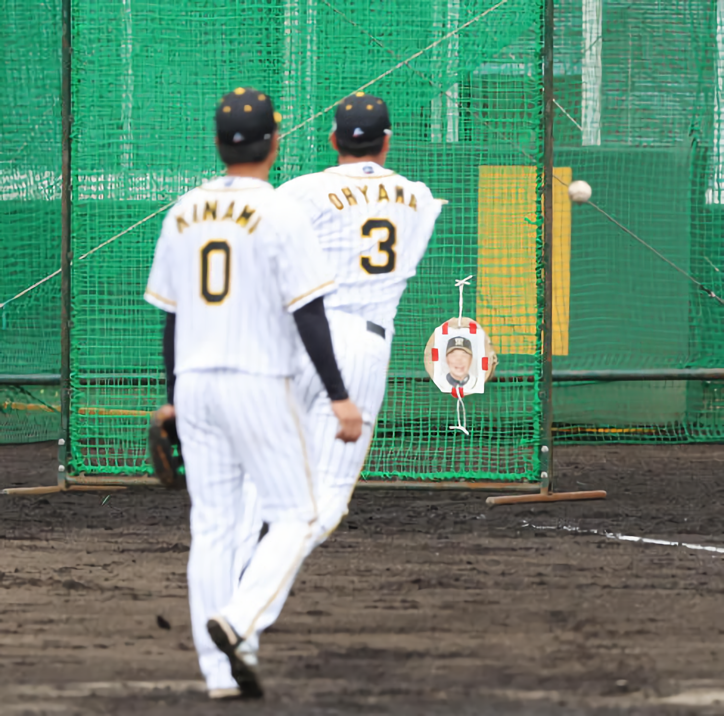 的当て練習も効果あり? シートノックの最後には阪神久慈内野守備走塁コーチの顔がプリントされた的が登場した。24日の中日戦で一塁を守った木浪聖也内野手(24=ホンダ)の本塁送球がそれたこともあり「ノックから低い送球を心掛けてほしい。タッチプレーは低いボールの方がアウトになる確率が上がるから」と久慈コーチは理由を説明。