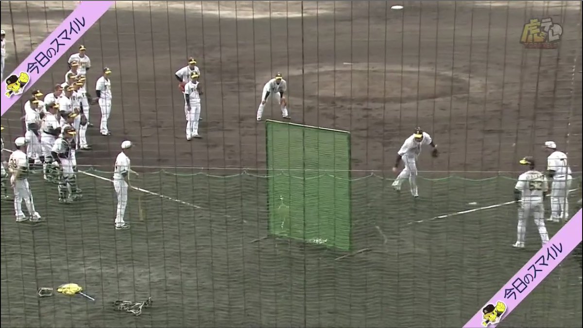 久慈コーチの顔写真を的にバックホーム練習してた時の、品のある送球で当てる大山くん・当ててガッツポーズのトリさん・外してみんなから「優しい!」て言われてる糸原くん・コーチの写真に緊張したのか急に当てられなくなるうえぽん・最後めちゃくちゃ近寄って投げて外す中谷くんかわいい😆 #hanshin