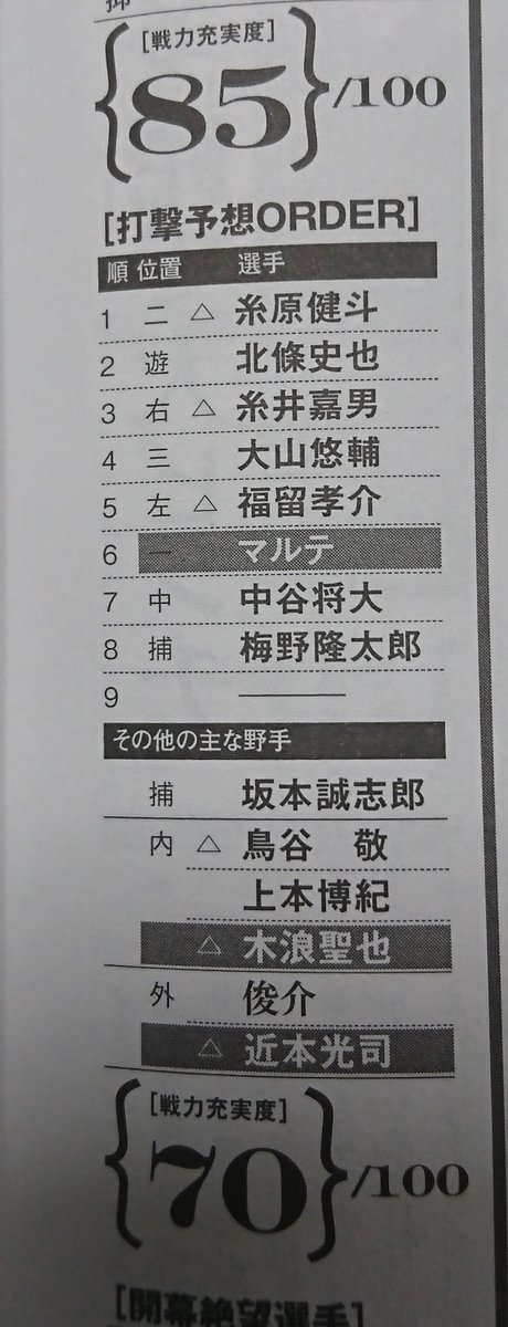 ・野手は結局福留糸井頼りになりそう、誰でもいいから出てこい