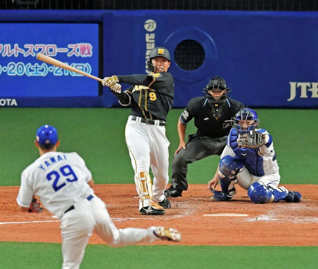 次は四回の第2打席だ。福留、木浪の連打で無死一、二塁の場面。2球目のストレートをはじき返し、今度はセンターフェンス直撃の適時二塁打を放った。
