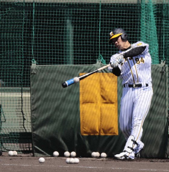 大腸がんからの復帰を目指す阪神の原口文仁捕手(27)が16日、西宮市内のファーム施設・鳴尾浜球場で、術後初めての屋外フリー打撃を行った。