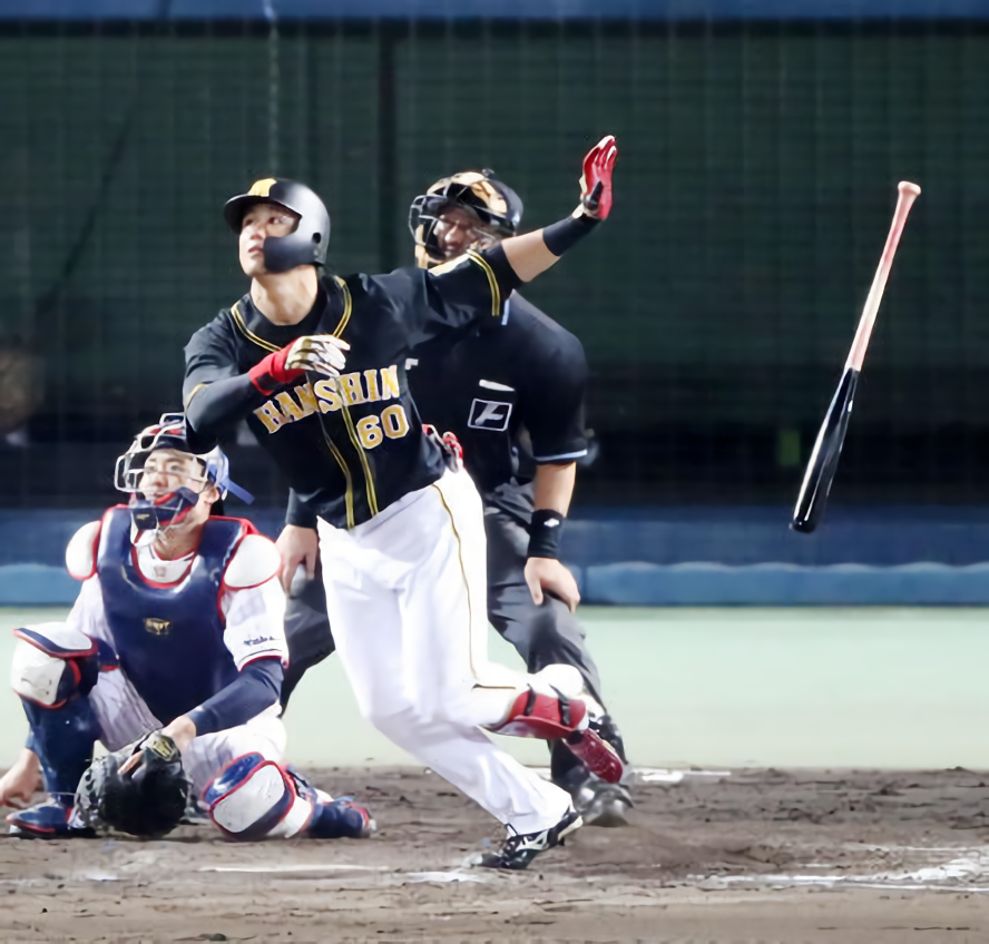 阪神中谷将大外野手が2ランで一矢報いた。6回の守備から出場し、9回2死三塁から右翼ポール直撃弾。