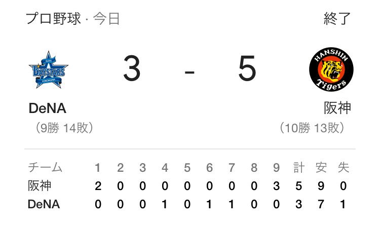 ソ9試合3勝6敗