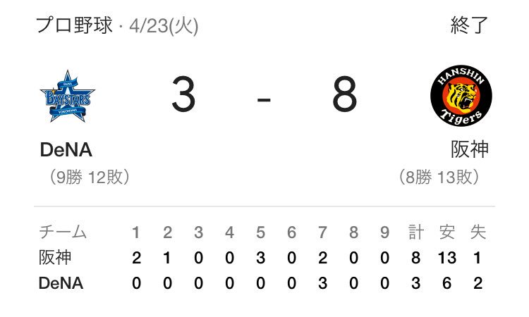 とらほー 2軍も勝ったよ。