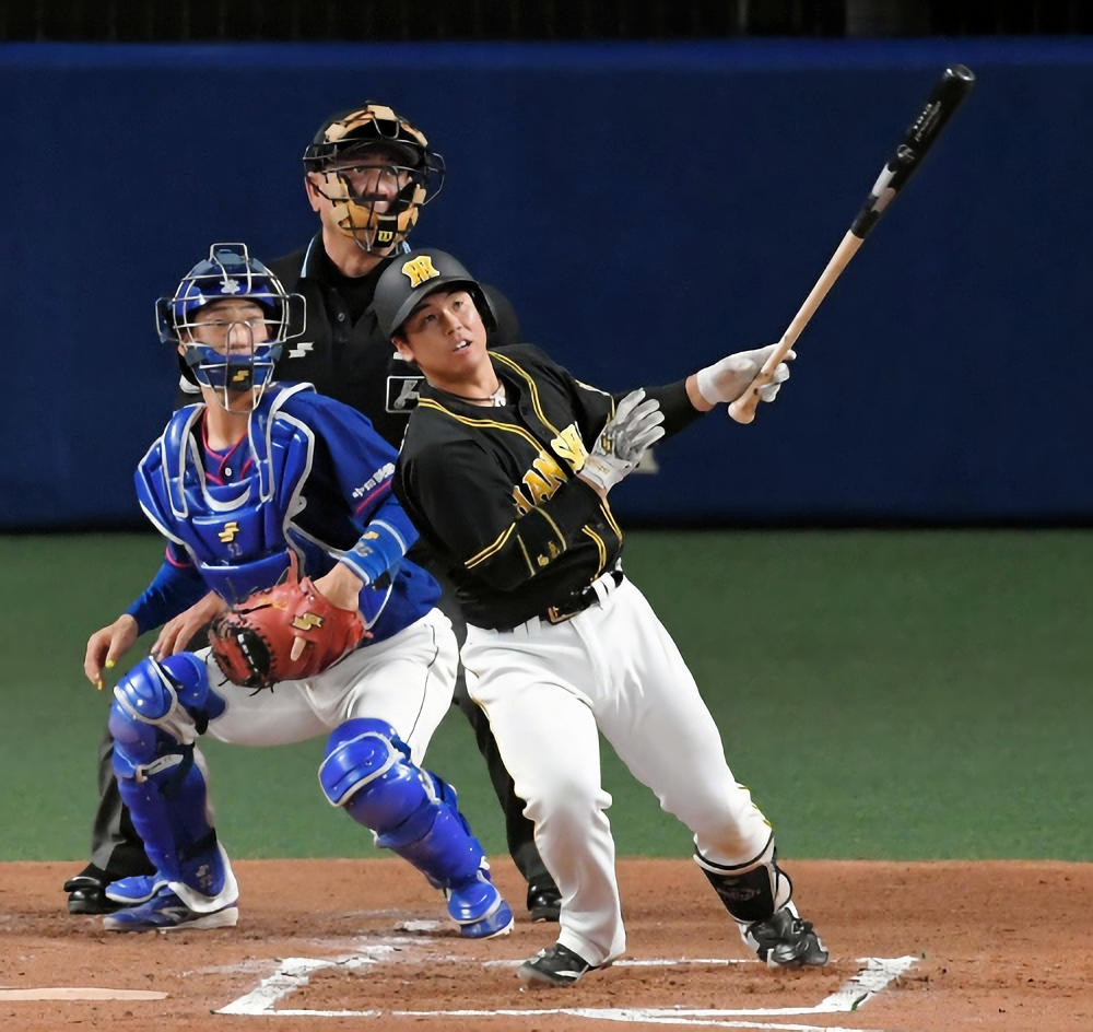 両軍無得点の二回1死から糸原が右翼線二塁打で出塁し、得点圏で打席を迎えた。カウント1-2からの4球目、柳が投じた141キロ内角高め直球を迷わず強振。打球は左翼フェンスに直撃し、その間に糸原は生還した。貴重な適時二塁打となった。