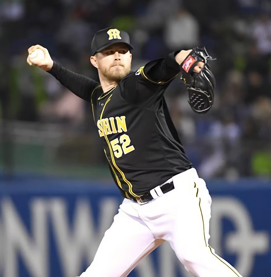 阪神のピアース・ジョンソン投手が、7日のヤクルト戦(神宮)の八回を三者凡退で締め、僅差の勝利に貢献。これで開幕から16試合連続無失点だ。