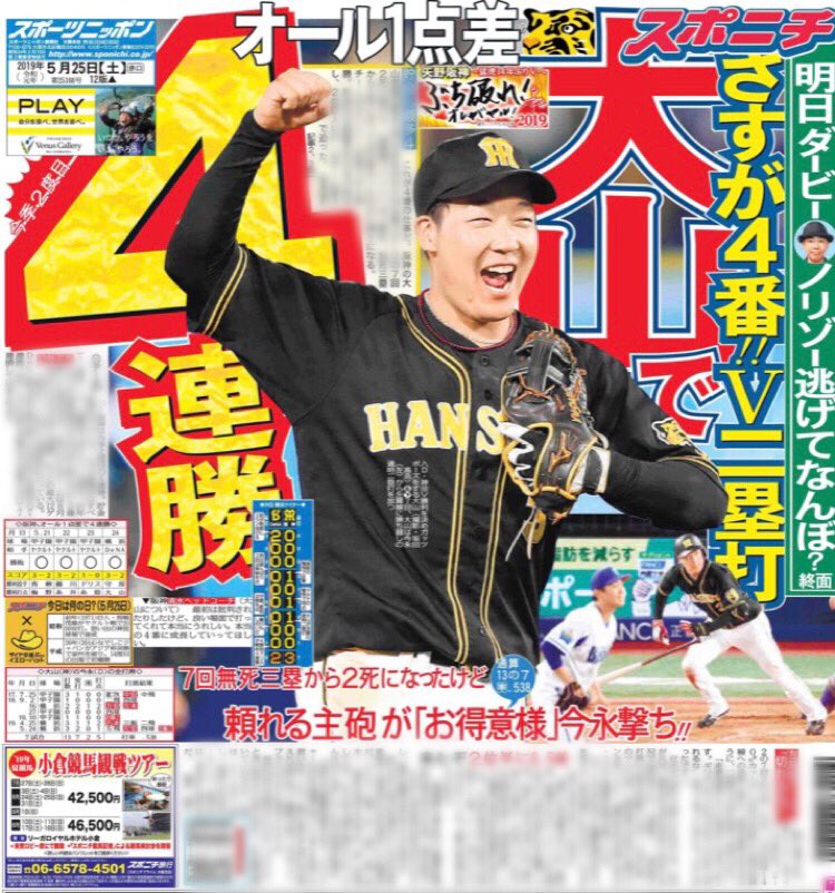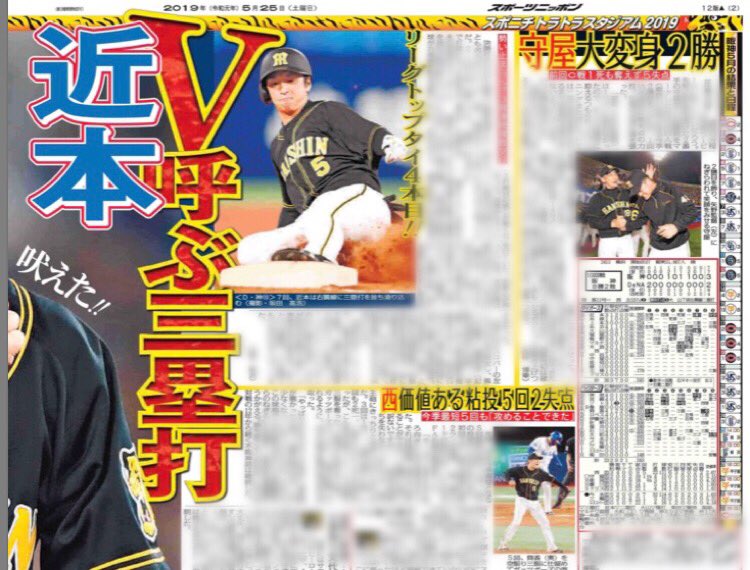 ドラ1近本 リーグトップタイの4本目三塁打!逆転勝利のお膳立て https://www.daily.co.jp/tigers/2019/05/25/0012363513.shtml …