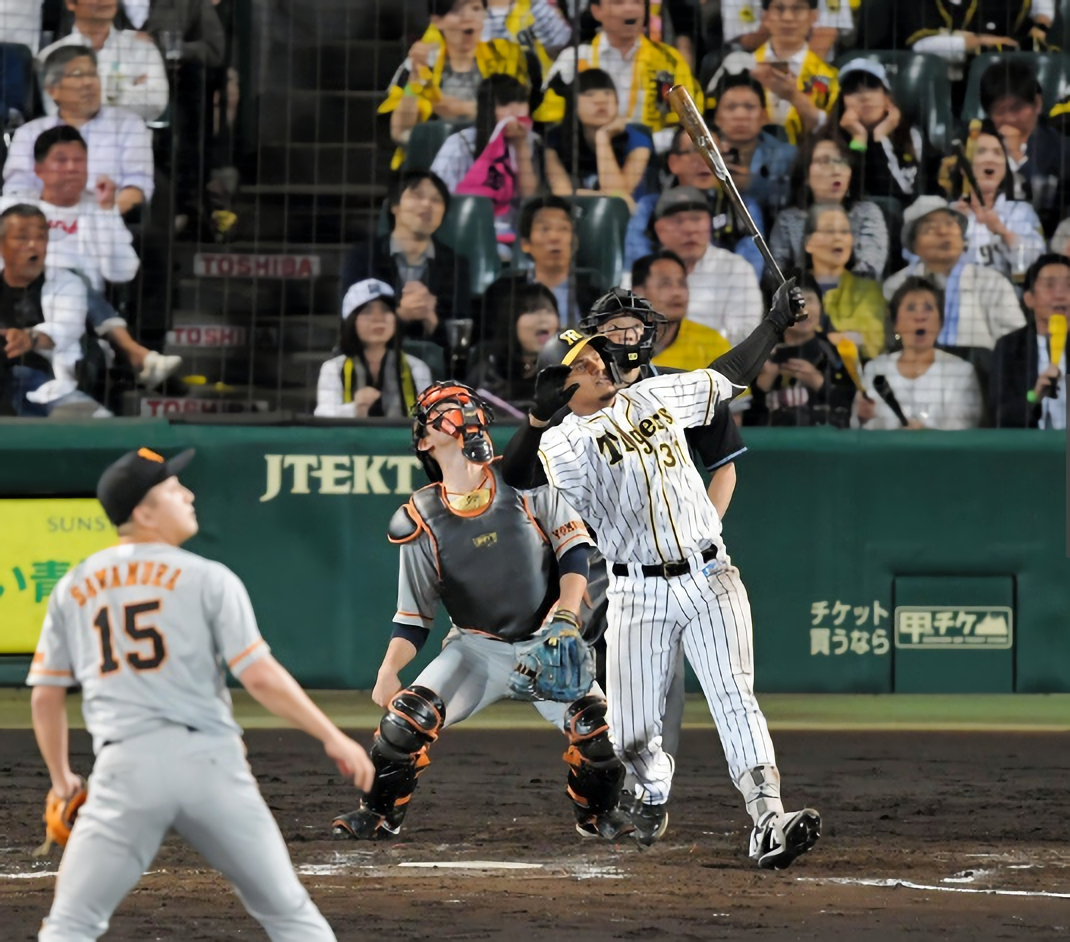 3点差の五回、上本の2点適時打で1点差に迫りながら、あと1本が出ない展開の中、迎えた八回だった。1死から福留が一、二塁間を破る右前打で出塁。それでも続く梅野が捕邪飛に倒れ、2死一塁でマルテが打席に立った。マウンドには沢村。初球を狙った。
