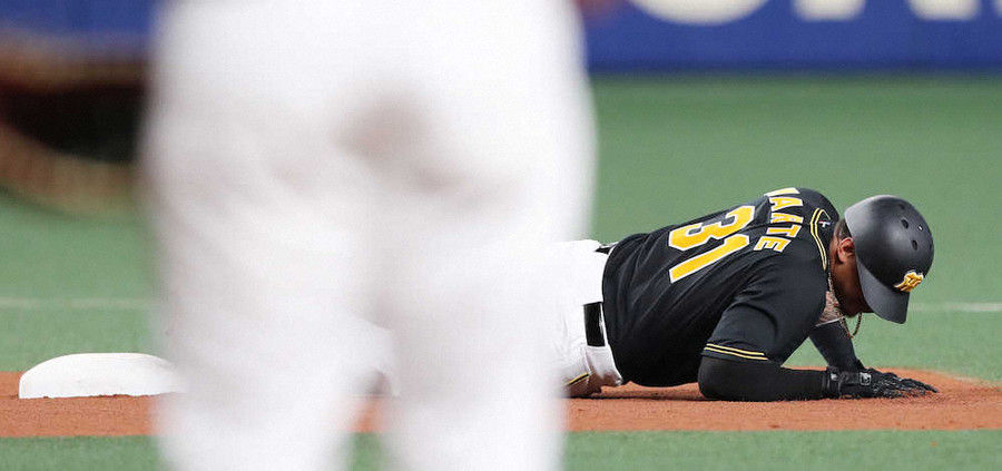 アクシデント発生だ。阪神のマルテは4回2死一塁から左翼線二塁打を放ったが、二塁にスライディングした際、左ふくらはぎ付近を押さえて、苦悶の表情を浮かべた。