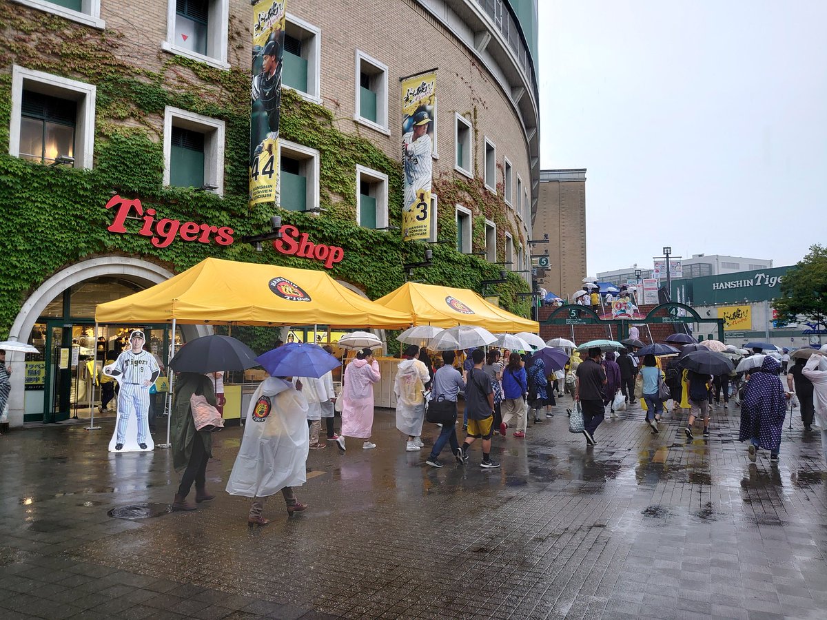 珍しく甲子園球場に来たのだが試合開始を遅らせるとのこと。本当に試合やるのか?中止にした方がいいのでは?と思うが虎党はカッパきて戦闘体制整えてるよ、すげえ。 pic.twitter.com/aHa8nv0ycJ