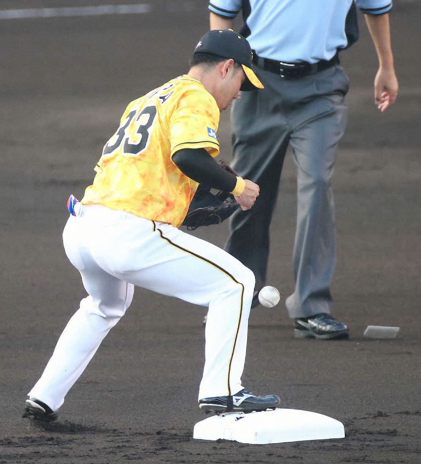 二塁がアウトになったため失策は記録されなかったが、スムーズならば間違いなく併殺で無失点に終わっていただけに、満員の甲子園にはため息がこだました。