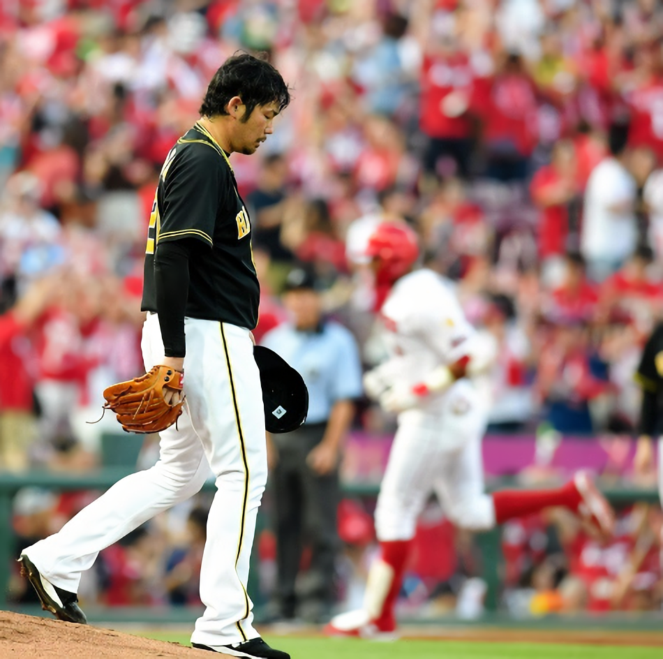 先頭の西川こそ中飛に打ち取ったが、続く菊池涼から連打を浴びる。1死一、二塁で迎えた4番・鈴木は併殺コースともいえる打球だったが、遊撃・糸原の捕球直前にバウンドが変わり、左前に抜けるアンラッキーな適時打となった。直後に会沢に右前適時打で1点追加されると、6番・メヒアには125キロのスライダーを完璧に捉えられ、左翼へ特大3ランを被弾。