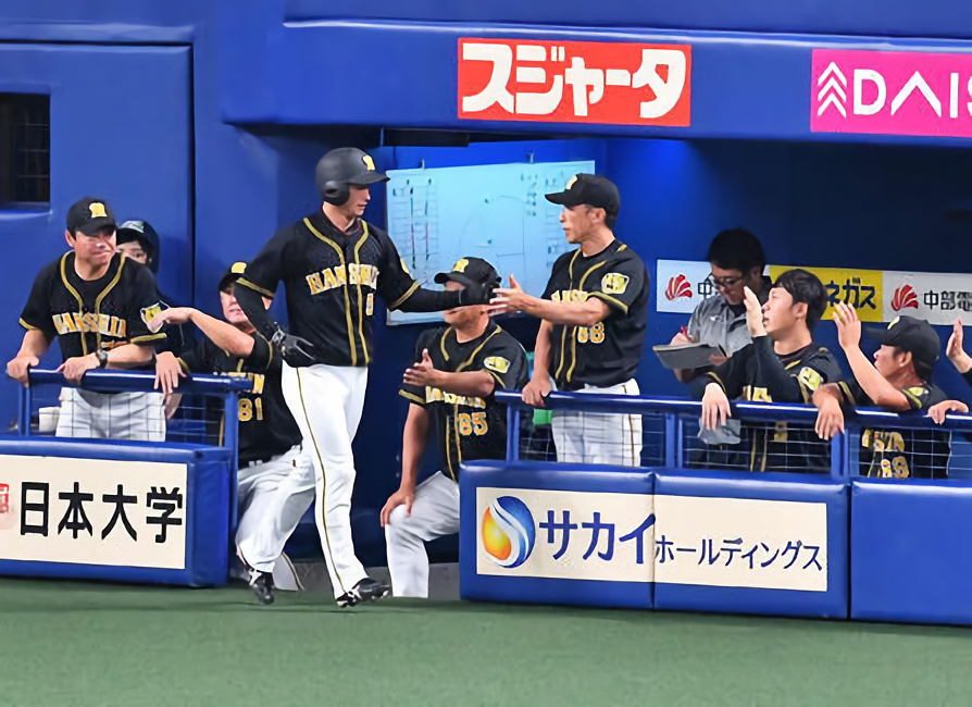 試合中のミーティングで、浜中打撃コーチは「得点出来ないからスイングが小さくなっている。しっかり振っていこう」と指示していた。5回に一挙5得点。「そこから点も取れてきたと思います」と振り返った近本の負の連鎖を止めた一打だけでなく、後続も続いての猛攻だった。