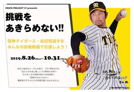 応募期間は10月31日までで、最優秀賞に選ばれれば、旅行券10万円分と岩田のサイン入りユニホームがプレゼントされる。動画、写真は「逆上がりができるようになる」「資格取得を目指す」など、いかなる挑戦でもOK。