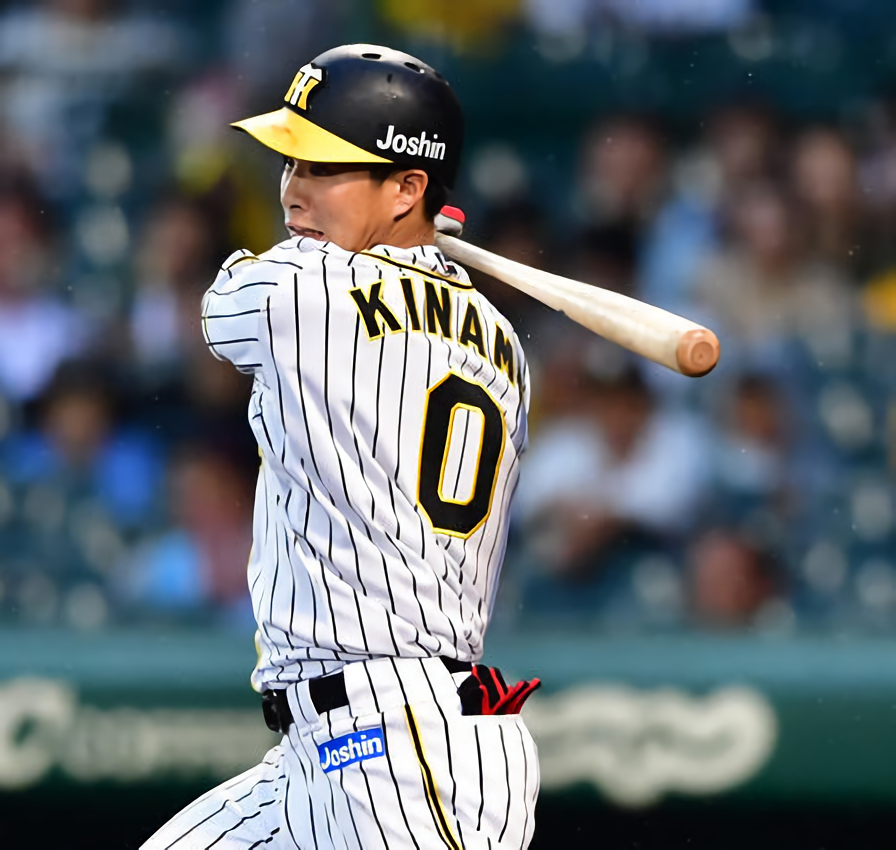 阪神木浪聖也内野手が4月2日巨人戦以来の1番で、8試合連続安打とした。