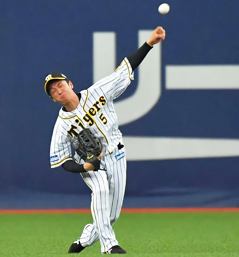バットと足が注目される一方で、両リーグトップの10補殺と守備でも光るものを見せている。虎の数々のピンチを救った送球の秘密を探りました。