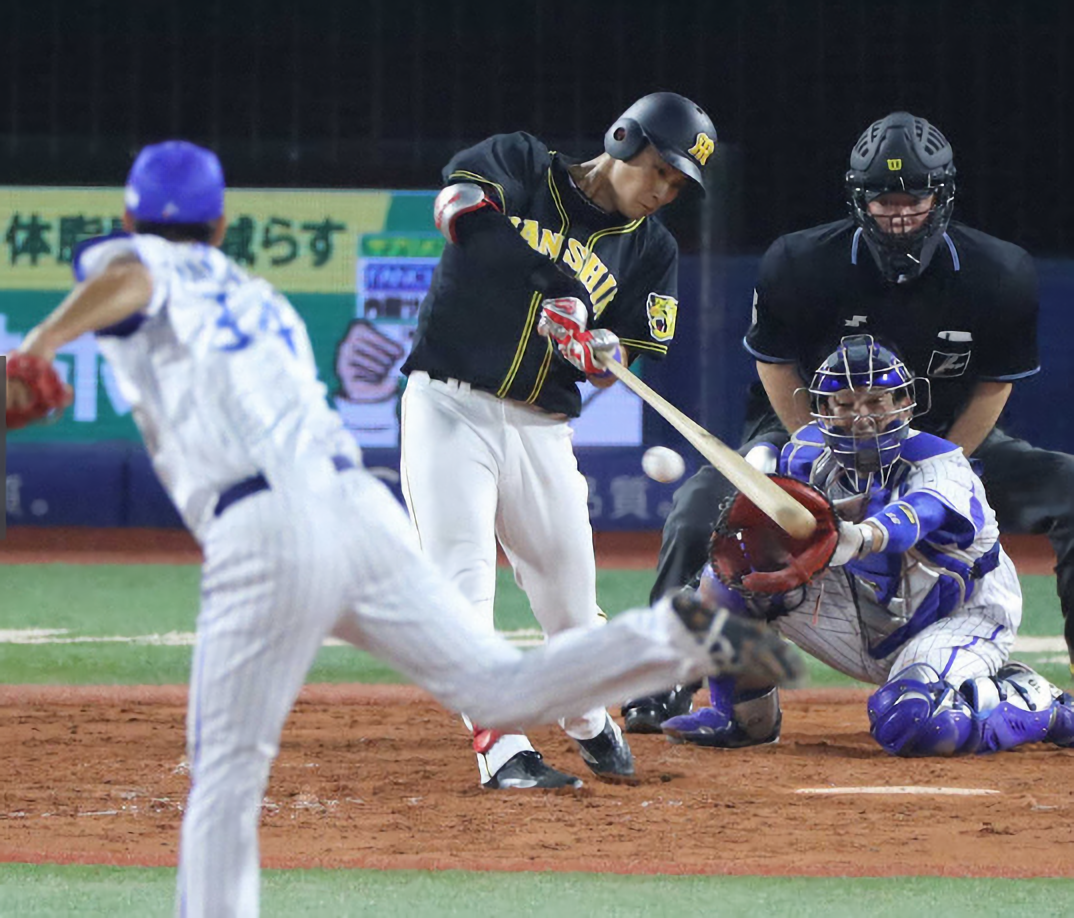 3回。4点先制してなおも2死二、三塁のチャンスで打席に向かうと、平田の内角変化球をうまく捉えて右前適時打を放った。これで13試合連続安打。同期入団の近本が持つ、新人連続試合安打記録に並んでみせた。