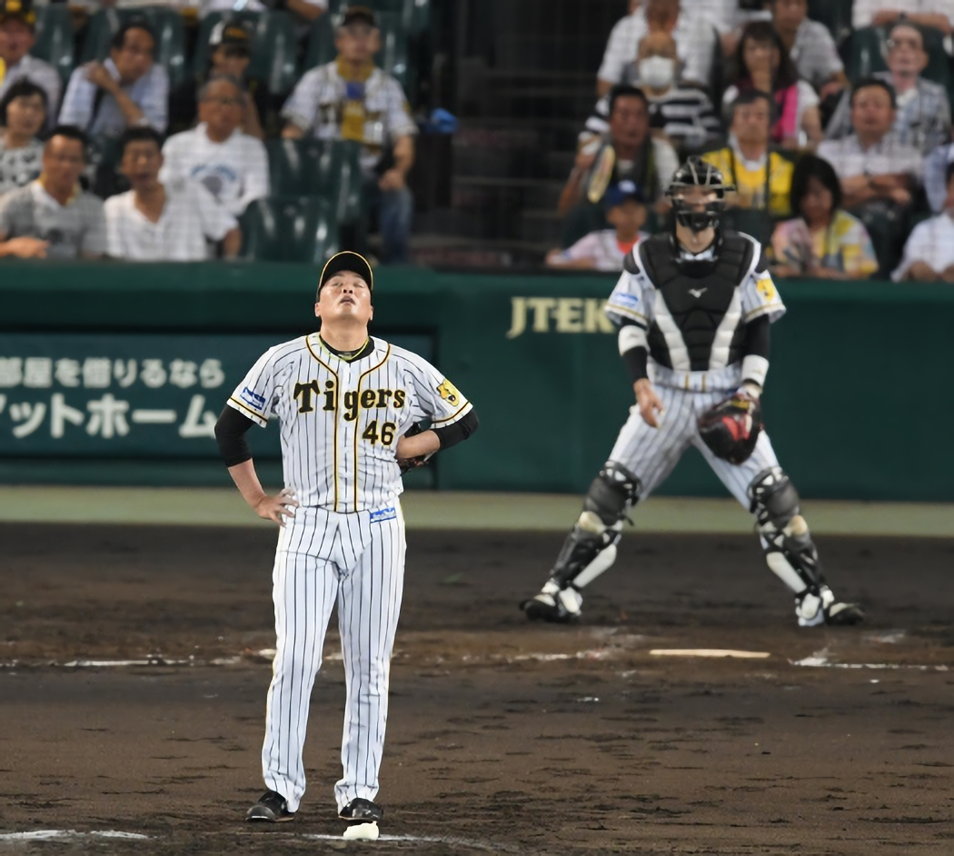 初回に阪神は先制したが、直後の二回に逆転されてしまった。1死から雄平に右翼線二塁打を許すと、走者を貯め、2死満塁のピンチを招いた。ここで打者は先発投手の高橋。なんとか切り抜けたい場面だった。だが、初球の128キロカットボールが真ん中に入り、完璧に捉えられた。打球は無常にも中堅の頭を越し、走者一掃の適時二塁打となった。