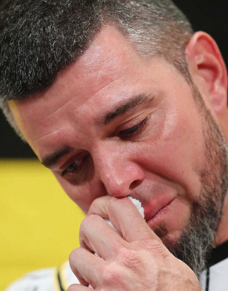 【写真】涙をこらえながら会見するメッセンジャー
