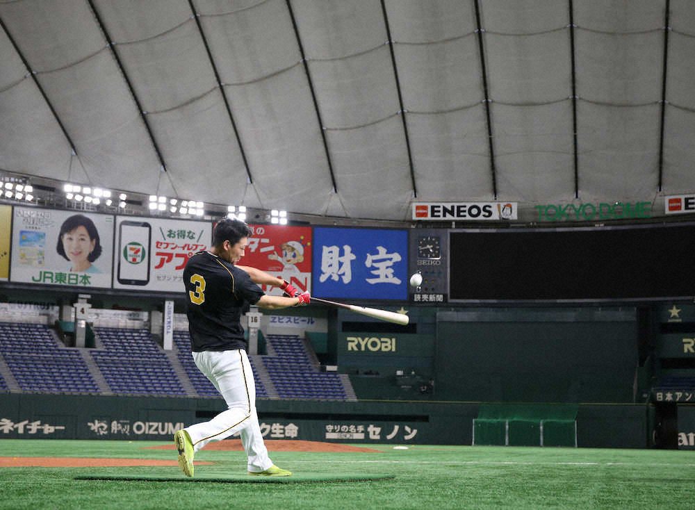 決意の表れだった。投手の練習終了後。野手では唯一、グラウンドに姿を見せると、黙々とバットを振り続けた。約30分間にも及んだロングティー。「ビジターの試合ではなかなかできないので」。気分転換も兼ねて汗を流し、9日から始まる巨人との決戦に備えた。