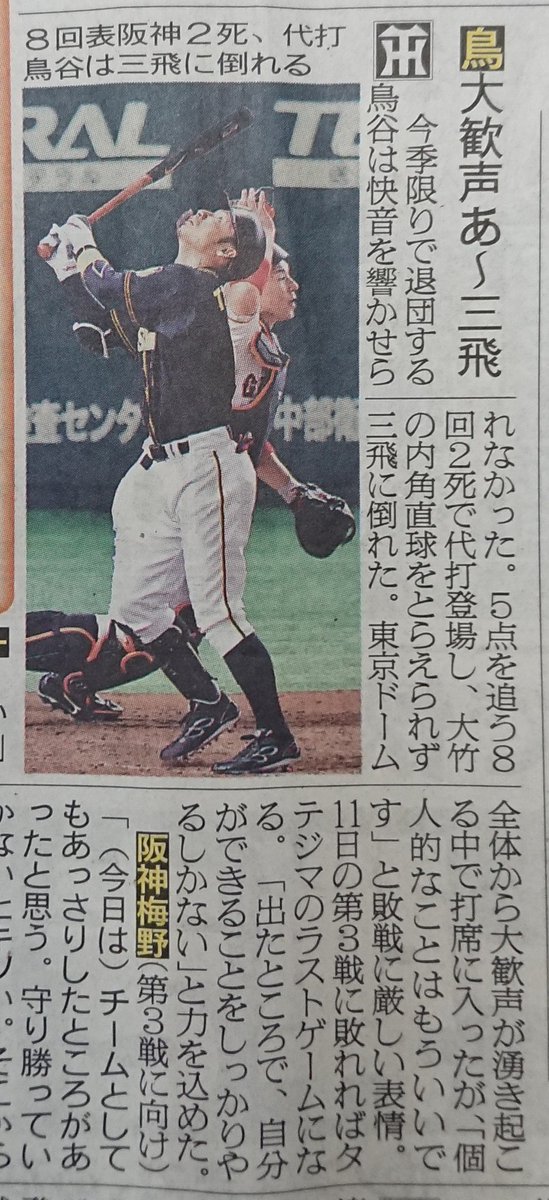 東京ドーム全体から大歓声が沸き起こる中で打席に入ったが、「個人的なことはもういいです」と敗戦に厳しい表情。11日の第3戦に敗れればタテジマのラストゲームになる。「出たところで、自分ができることをしっかりやるしかない」と力を込めた。