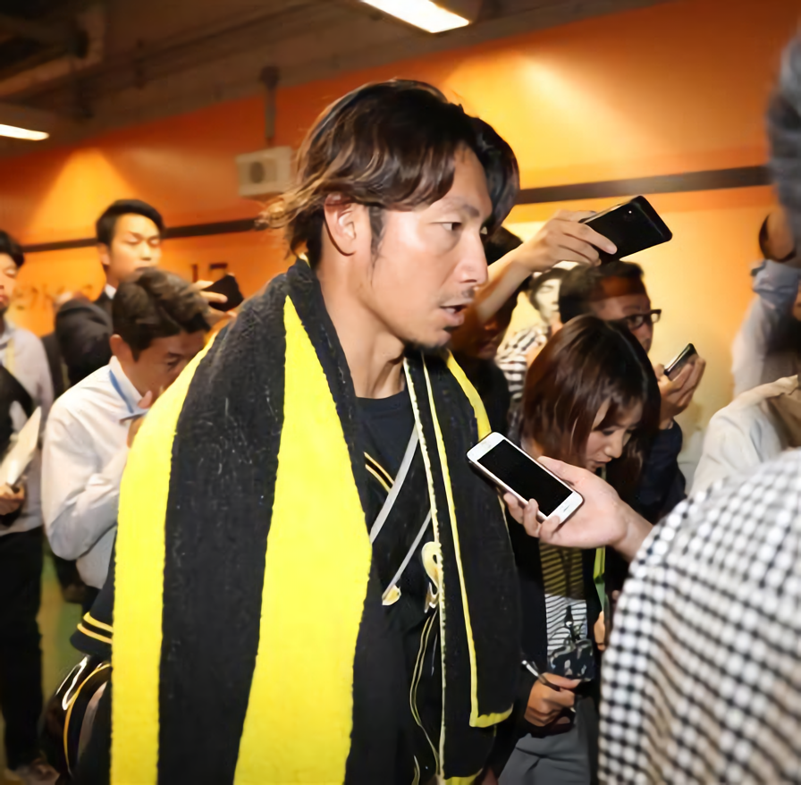 東京生まれ、東京育ち。関西の文化に戸惑った入団直後が懐かしい。愛され、時にはたたかれ、ラストは涙され、ついに16年間の縦じま生活に別れを告げる。 pic.twitter.com/V5Yvo6kl4h