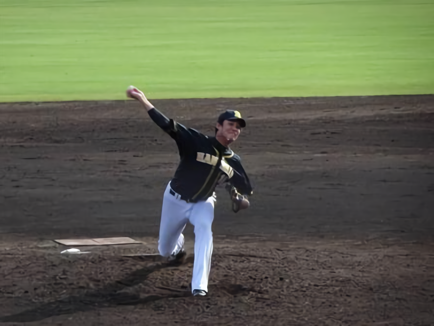 3-3の八回に登板すると1死走者なしから万波に高めに浮いた直球をとらえられ、右中間二塁打。続く白村はフルカウントから内角低めへの変化球で空振り三振。石川亮への初球は抜け球(暴投)となり、三塁に走者を進めたが、最後は変化球で2者連続の空振り三振にしとめた。