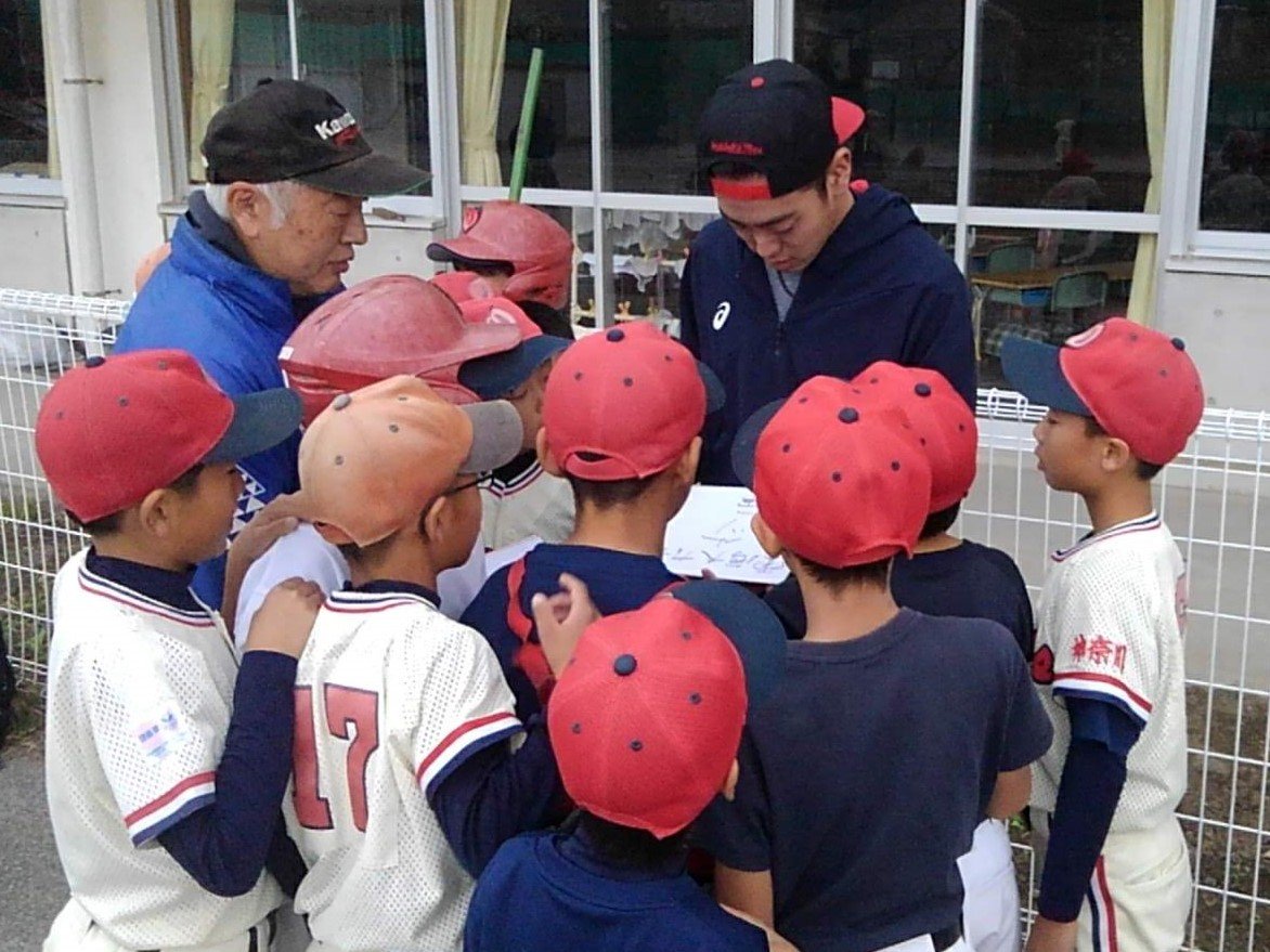 小川投手は11月3日、「逗子オリーブス」の練習に足を運び、指導を受けたコーチたちにあいさつ。児童たちと写真を撮ったり、サインの求めに応じたりした。児童の1人は「僕もサインを練習している」とボールに書かれた小川投手のサインを興味津々にのぞき込んでいた。