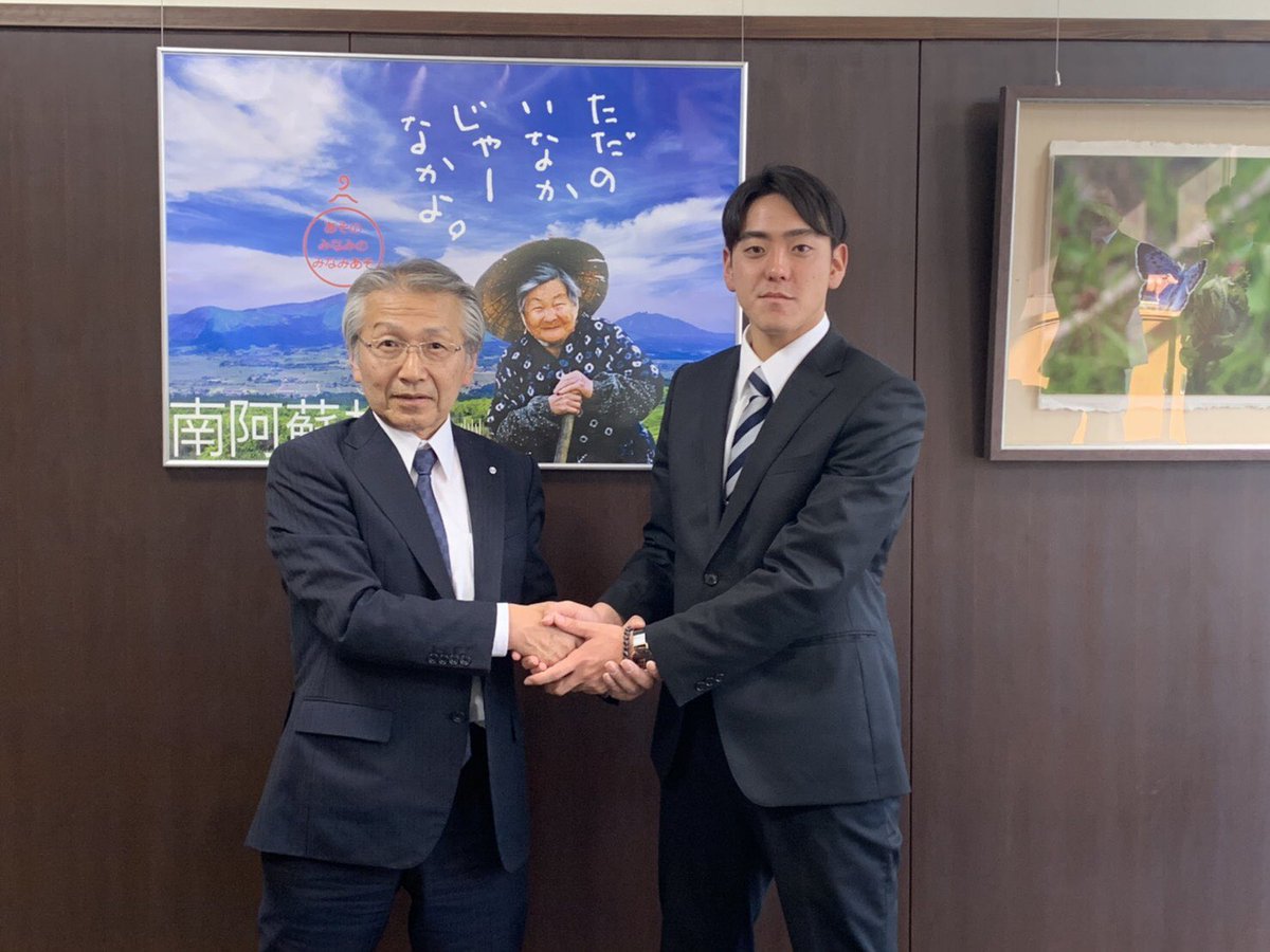#阪神 ドラフト6位の #東海大九州 #小川一平 投手の様子が届きました。今日は南阿蘇村の吉良村長にあいさつに訪れました。南阿蘇村は熊本地震で被災した大学の寮があった場所。小川選手は「被災した方々に元気を与えるために、早く1軍のマウンドに立ちたい」と気を引き締めていました。 pic.twitter.com/uGypqeANps