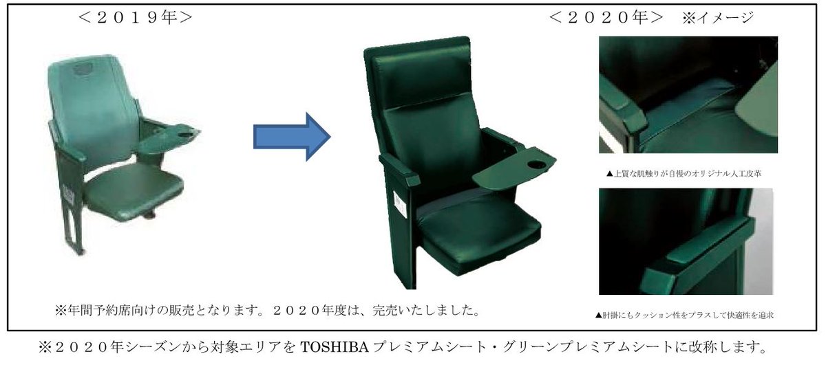 改修と仕様変更は、TOSHIBAシート・グリーンシートの座席や、一・三塁アルプス席の座席(プロ野球開催時に座席横幅を従来の1・5倍に拡張する)など。より多くの人に快適な野球観戦環境を提供することを目指している。来季オープン戦(日程未定)から利用できるとしている。