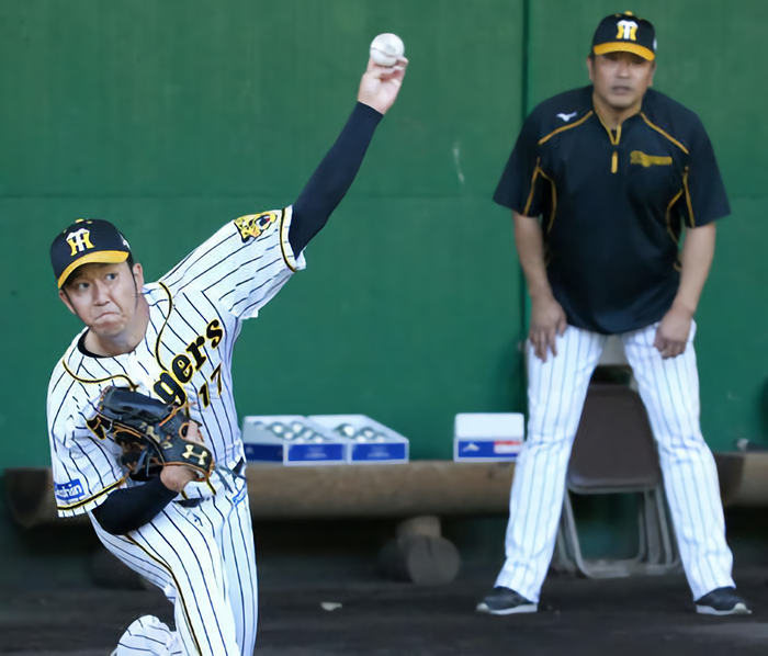 阪神岩貞祐太投手が“昌グラブ”を試した。ブルペンで82球を投げ込んだ後、個別練習で山本臨時コーチのグラブをつけて指導を受けた。