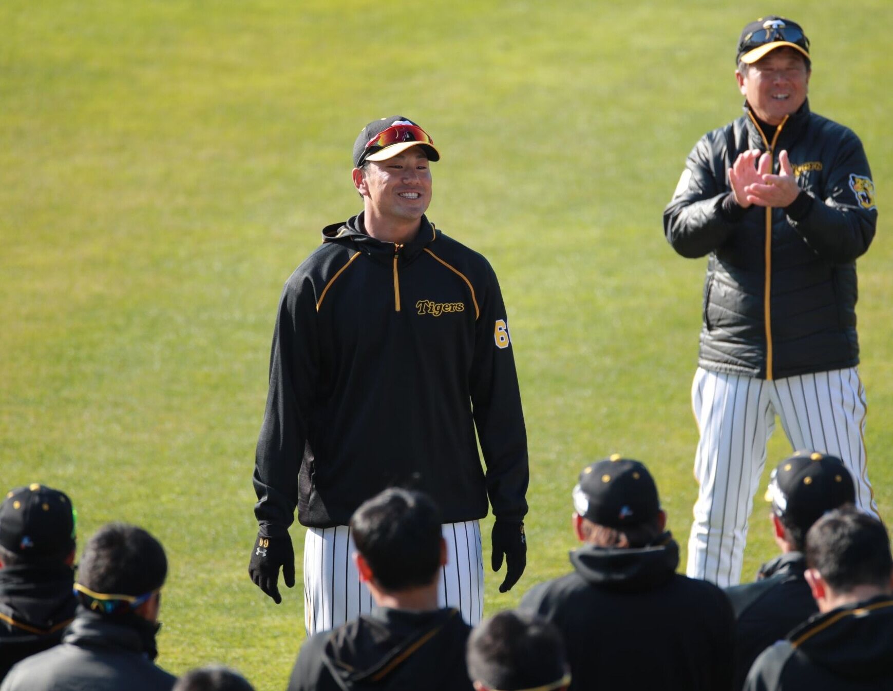 安芸キャンプで野手キャプテンを務める阪神・中谷将大外野手(27)がこの日の声出しを担い、自身の担当スカウトで阪神OBの田中秀太スカウトを丸刈りにさせるための公約を立てた。