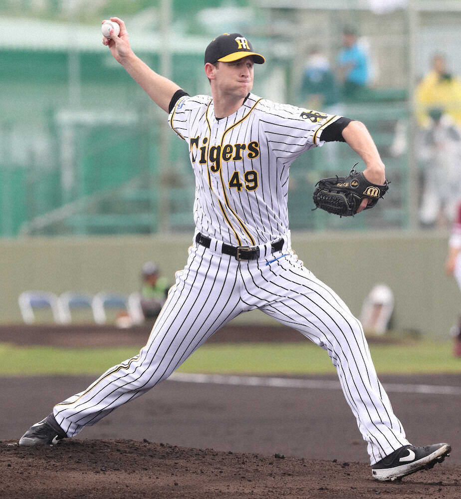 阪神の新外国人、ガンケルが16日、楽天との練習試合(宜野座)で対外試合デビューを飾り2回1安打無失点だった。