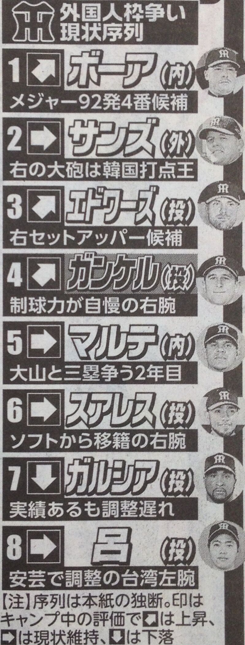去年の4番マルテ枠漏れるやん
