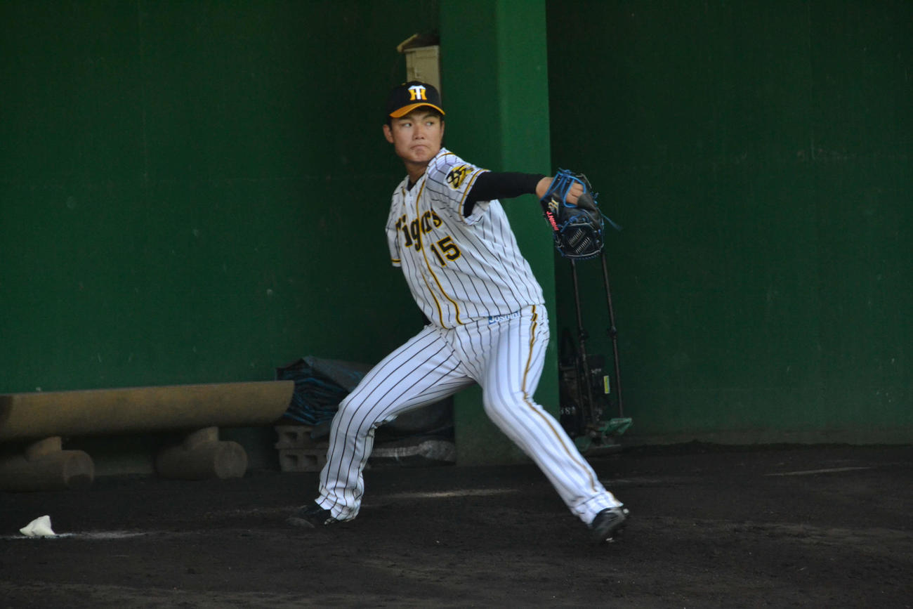 阪神ドラフト1位の西純矢(18=創志学園)と同3位及川雅貴(18=横浜)の高卒新人2投手が、安芸のブルペンで変化球を解禁した。