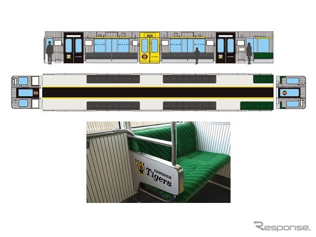 阪神電鉄に「野球」のラッピング電車…黄色い「タイガース号」と緑の「甲子園号」