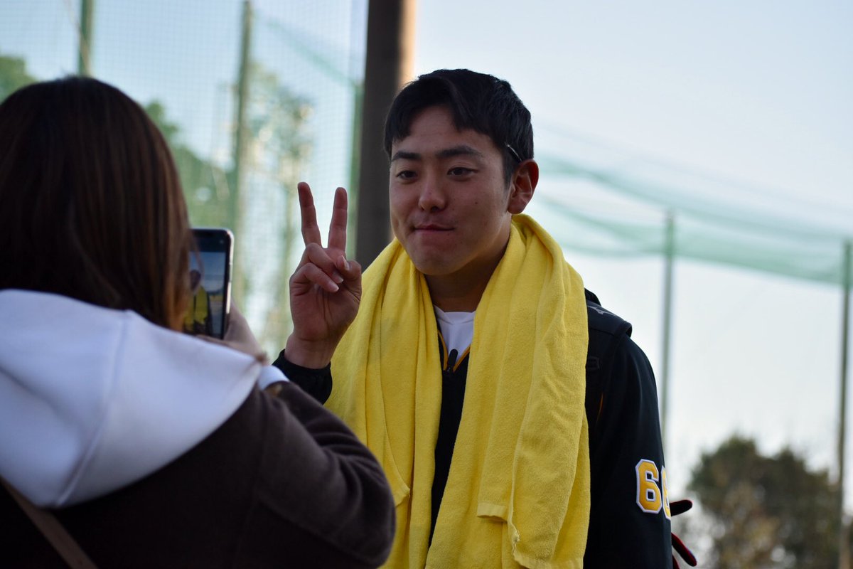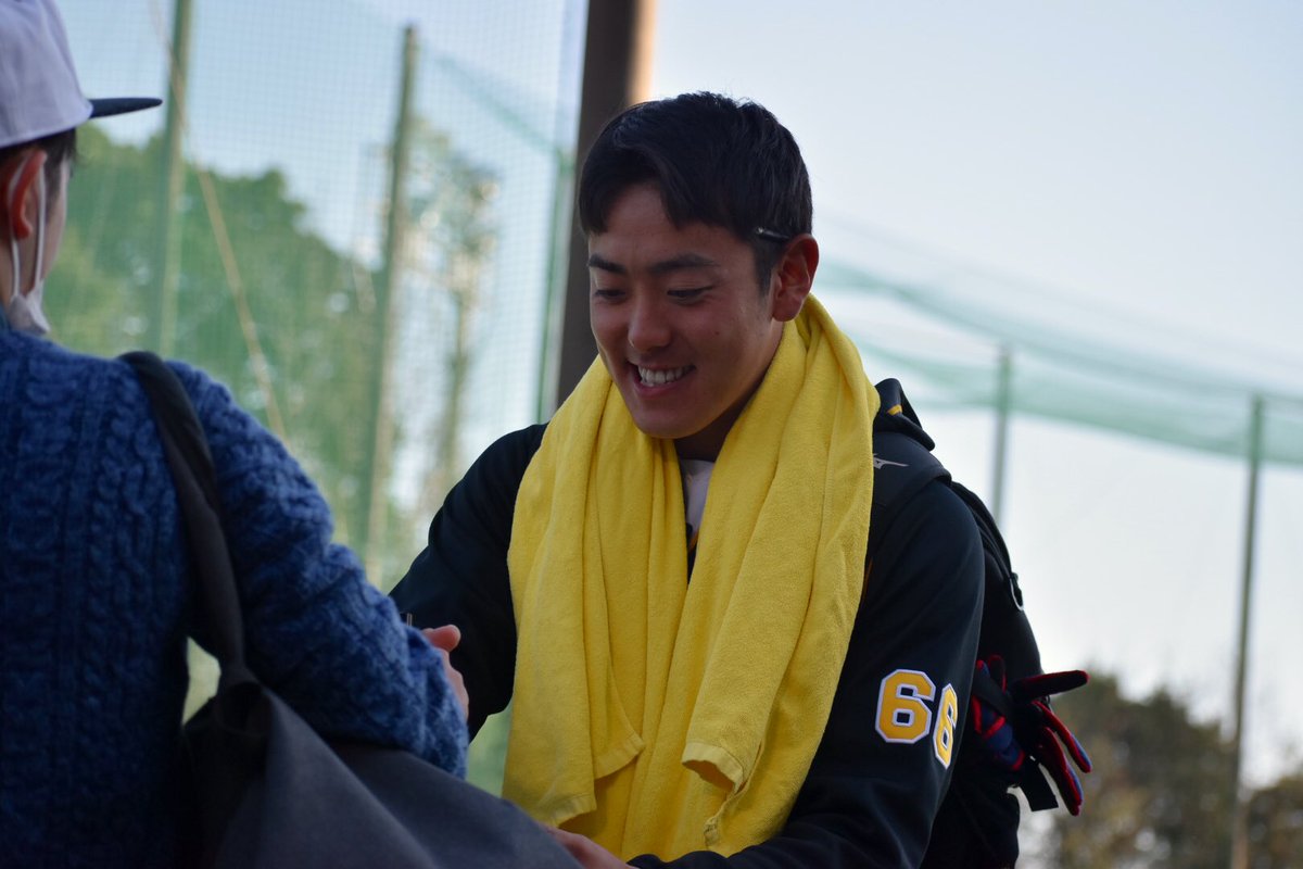 20日のシート打撃では打者11人に対して安打性の当たりはゼロ、直球も自己最速に並ぶ149キロをマークした。平田2軍監督は「意気が良いしキレもいい。実戦でマウンドの感触を確かめてね。楽しみが増えた」と、新人投手唯一の大卒で即戦力と期待する右腕の背中を押した。