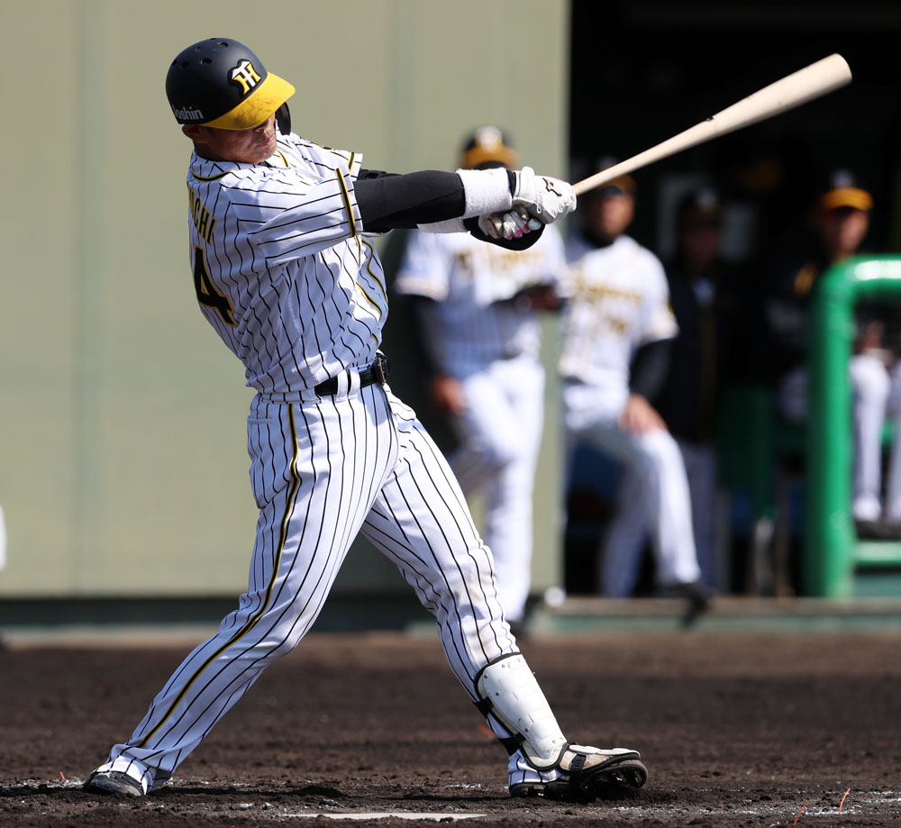 2回1死走者なしで育成右腕ロドリゲスの外角151キロ速球を完璧にミート。右中間最深部へオーバーフェンスさせた。「しっかり真っすぐにタイミングを取って、ひと振りで決められた。良かった」。この日は開幕ローテーション候補のスアレスと先発バッテリーを組み、5回1失点の好リード。梅野が正捕手として不動の地位を築くなかで、存在感を示した。