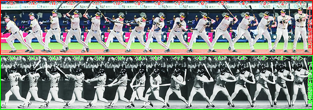 現役時代に同僚だったバースの良さというのも、体重移動にあった。写真<4>のテークバックから<8>まで下半身主導で、ボールをとらえにいっている。それでいて、速球で食い込まれそうになれば、少し体重を戻して回転する。半速球や変化球の時はそのまま前方向に体重を乗せながら、対応する。タイミングをズラされた時に、下半身で調整するのが一番簡単だ。上体で合わせようとすると、頭や肩が突っ込む形になり、打撃の調子が悪くなる。ボーアがオープン戦で結果を残せなかったのは、キャンプからの疲れがあったのかもしれない。守備練習を多めに受けて、下半身ができてくると、調子は上がってくる。現時点ではそれほど心配する必要はない。