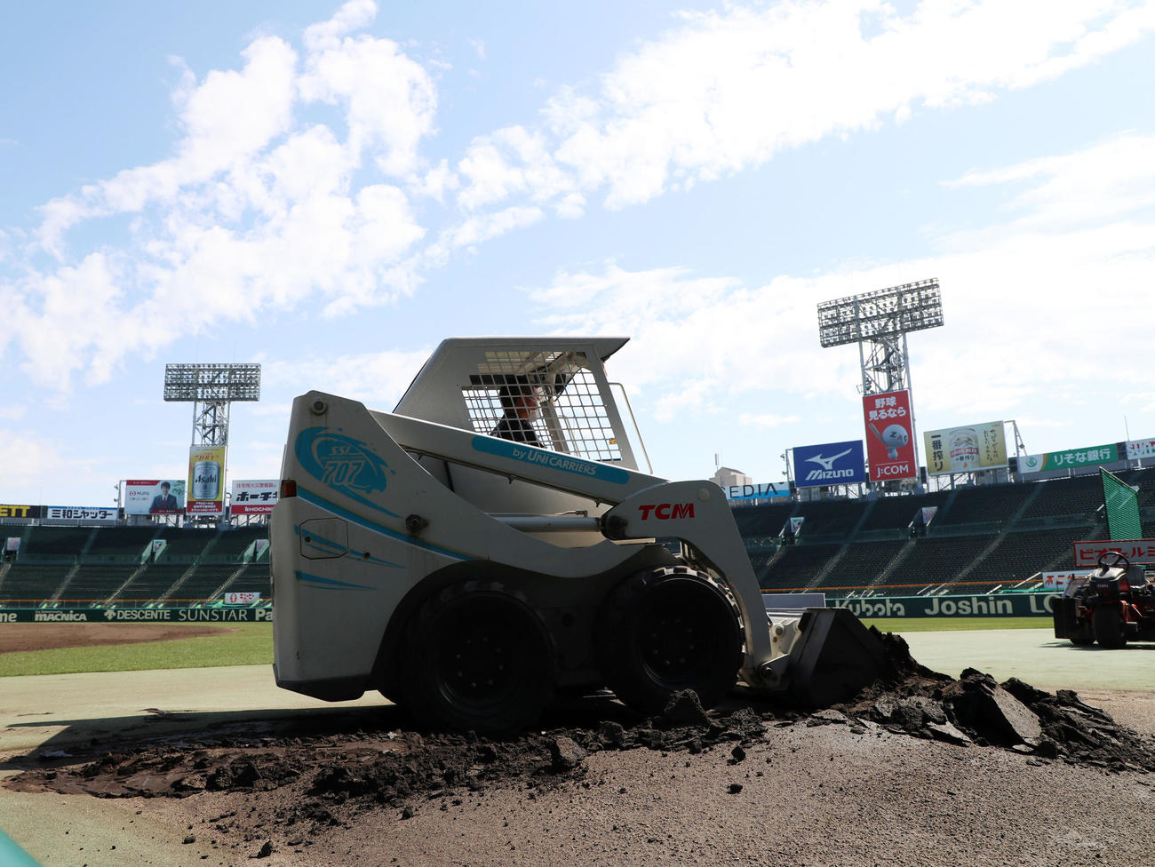この日、取り除いた土はファウルグラウンドにまいた。阪神園芸で甲子園施設部長を務める金沢健児さん(52)は「年によって取った土をグラウンドにまくか倉庫にいれるか違う。まいた後、なじむにも時間がかかる」と話した。